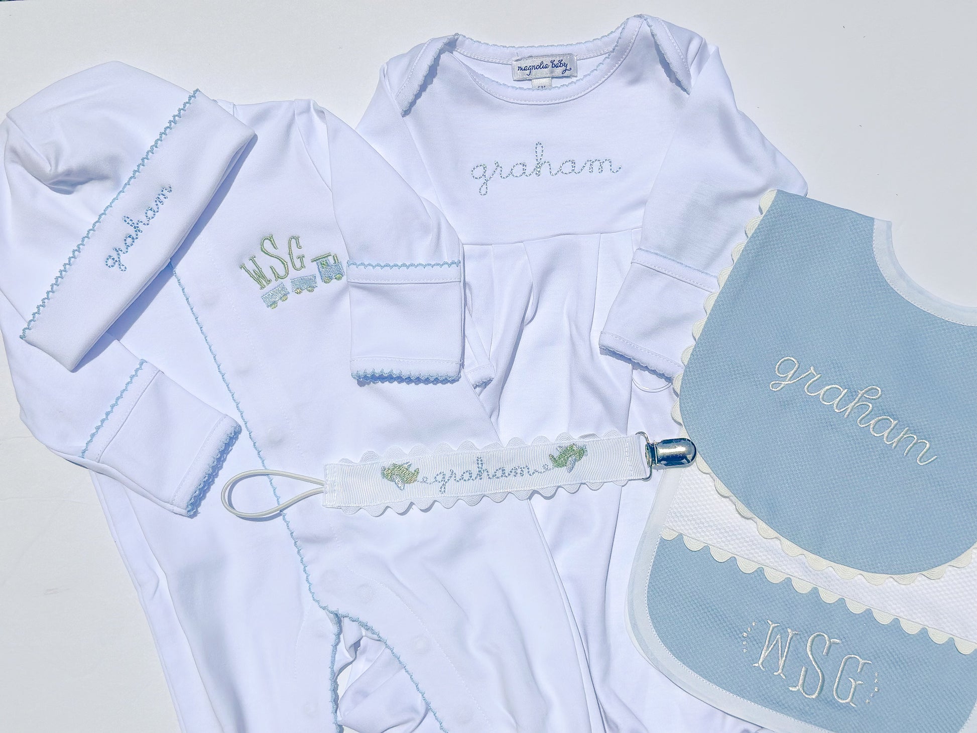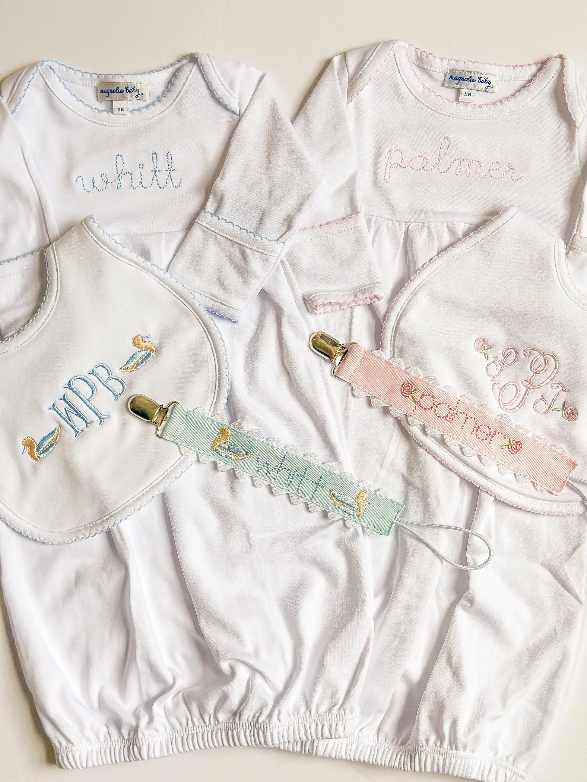 Level 2: 4-5 items (may include a couple of bibs, burp clothes, footies, gowns, hats, blankets, bags). $175