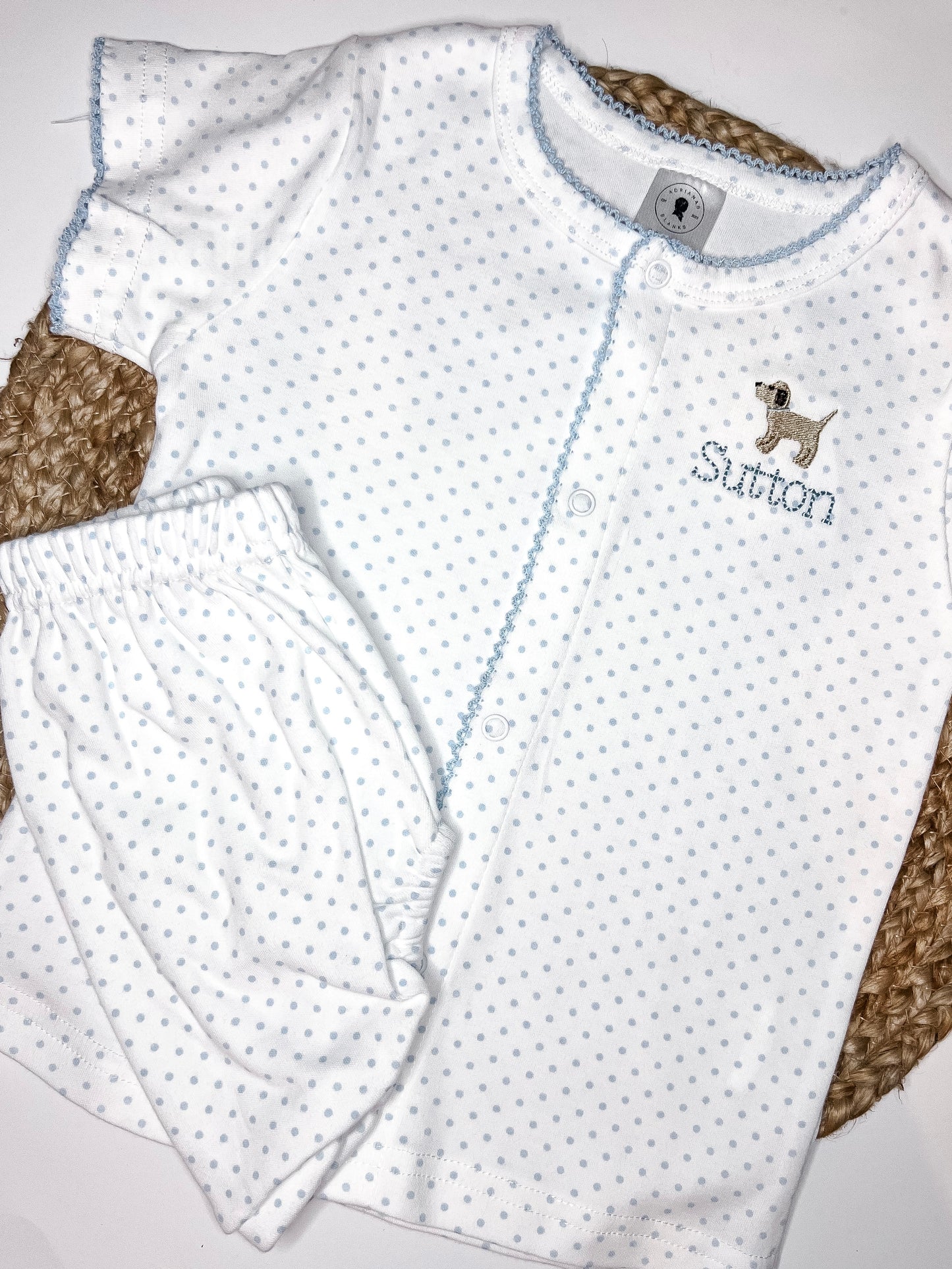 These were a most favorite last year! These knit diaper sets are so comfortable and so cute! These run slightly generous but I would get your typical size and know you'll have some room to grow. Price includes embroidery.