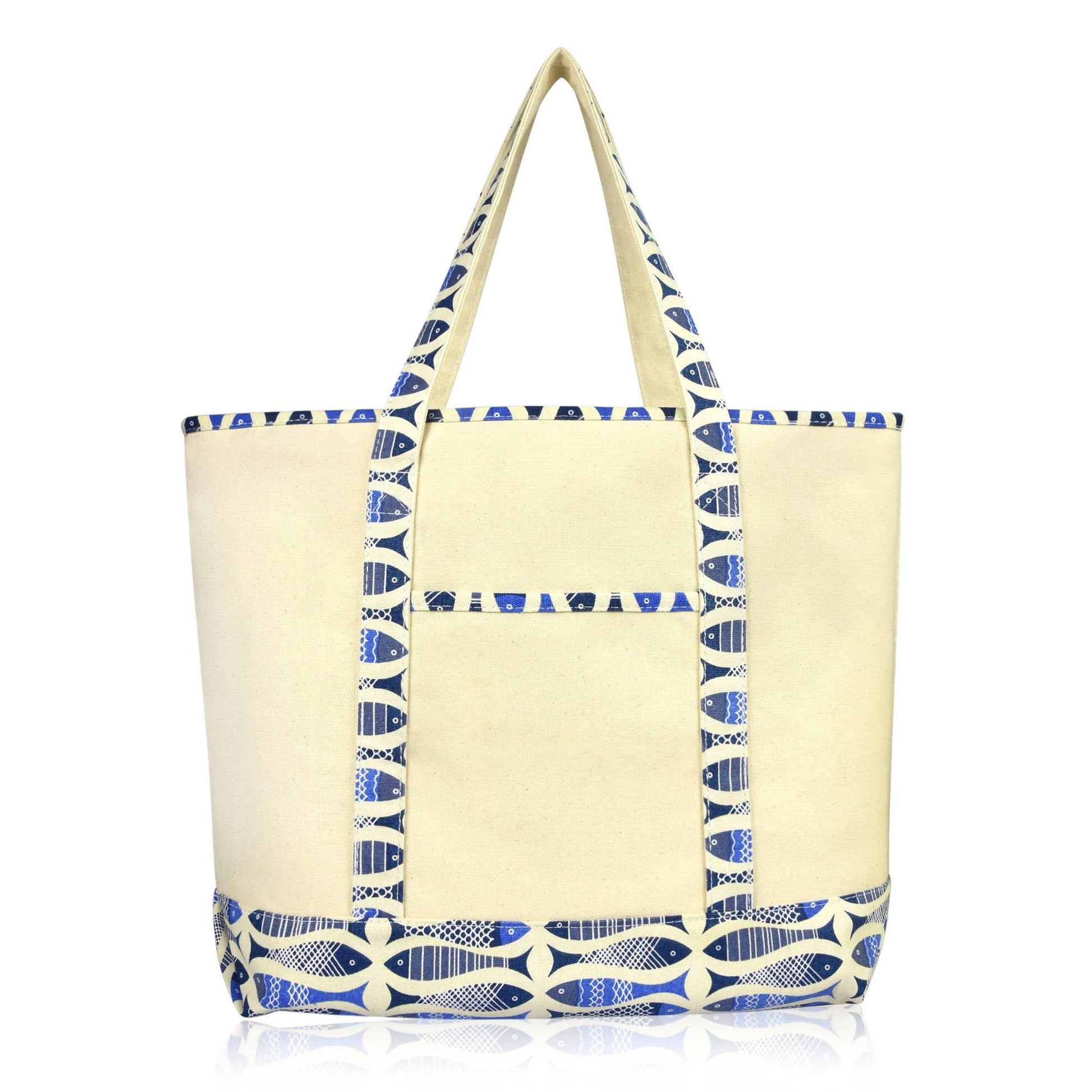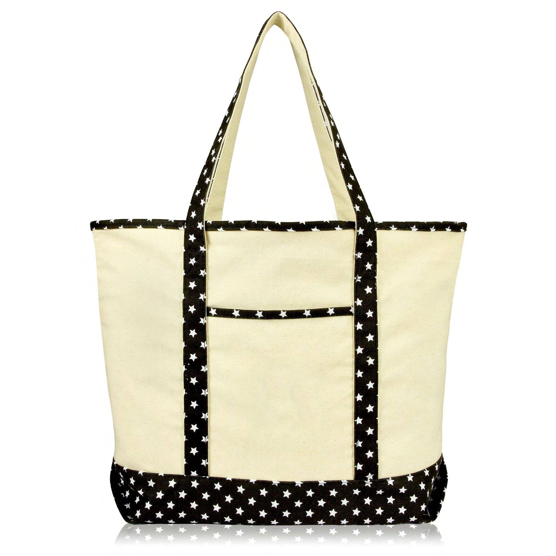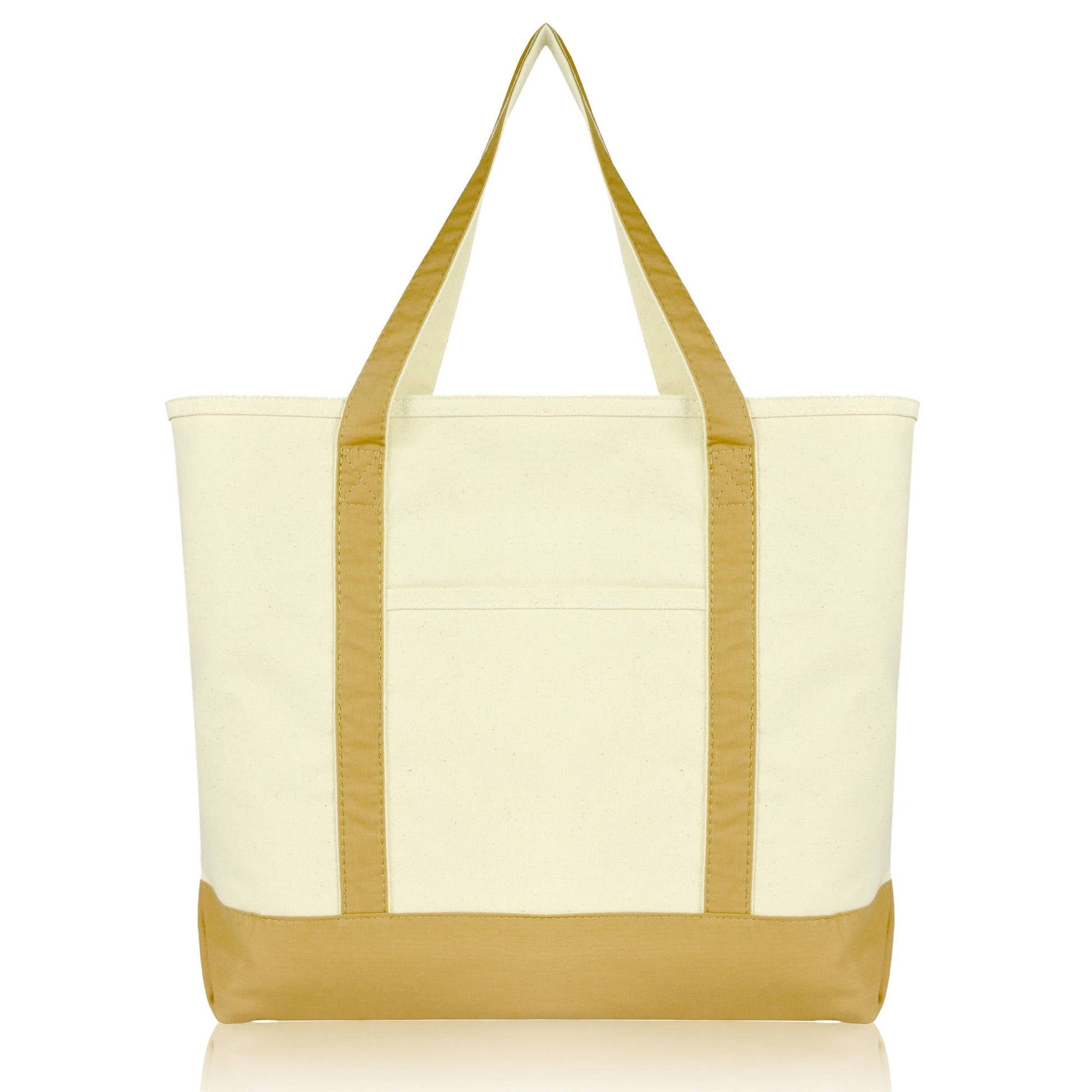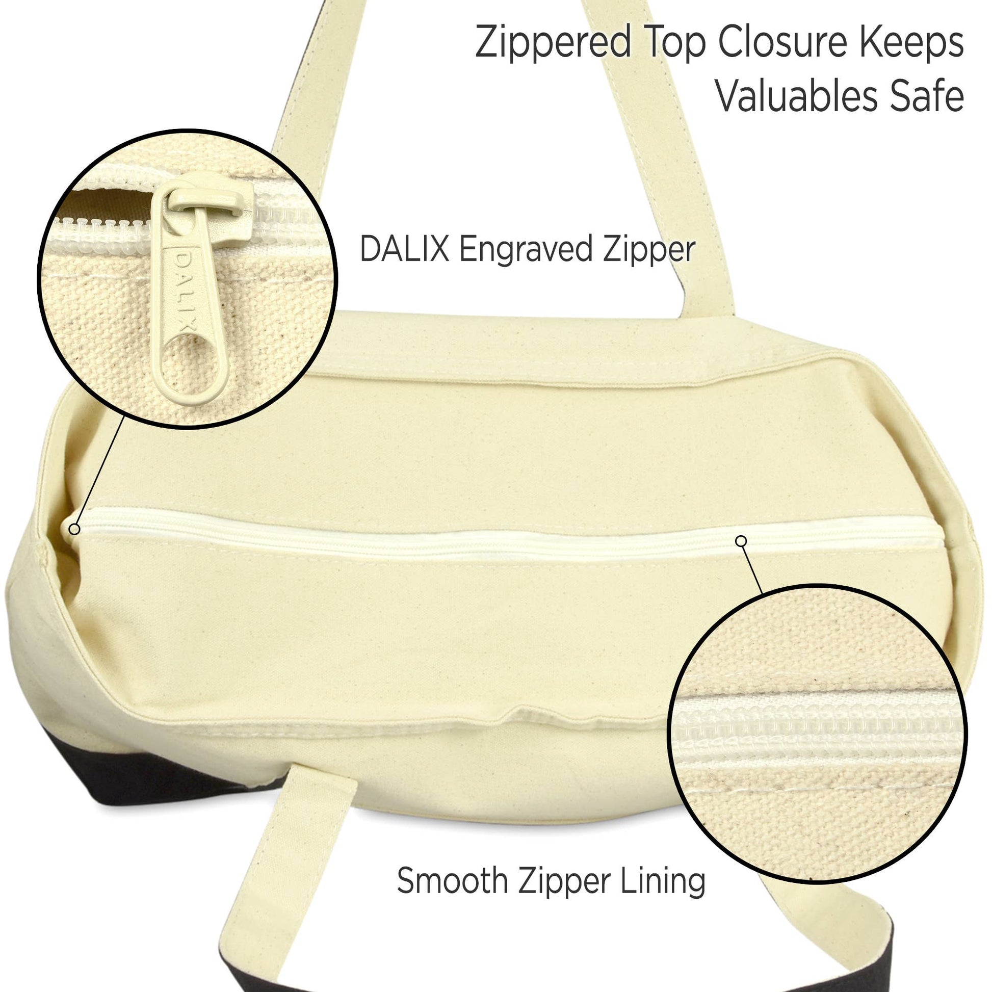 22" Shopping Tote Bag in light Cotton Canvas SIZE: 22" X 16" X 6". Zipper top and light weight for easy storage and carry around.