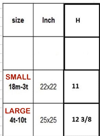 Sizes are SMALL(18M-3T) and LARGE(4T-10T). There is a sizing chart on the last picture.